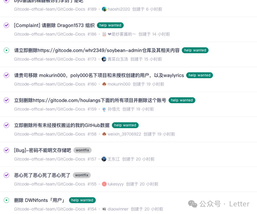 目前,已经有不少人注意到了自己的项目被偷偷搬运,已经有大量开发者涌入 Gitcode 官方社区要求该平台完全删除自己的项目。
